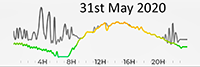 22nd Jan | 24 | 21 | 12 | 9 | MODERATE | Even distribution in day; sharp up-ticks pm. | ||