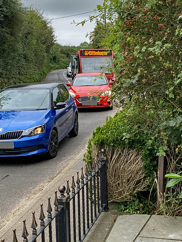 This gallery knocks into a cocked-hat the idiotically timed two traffic samples made by the developers to argue that a new junction onto Lynsted Lane might be workable and acceptable. The complexity of this topography cannot be improved by adding further competition for what is little better than a rural track!